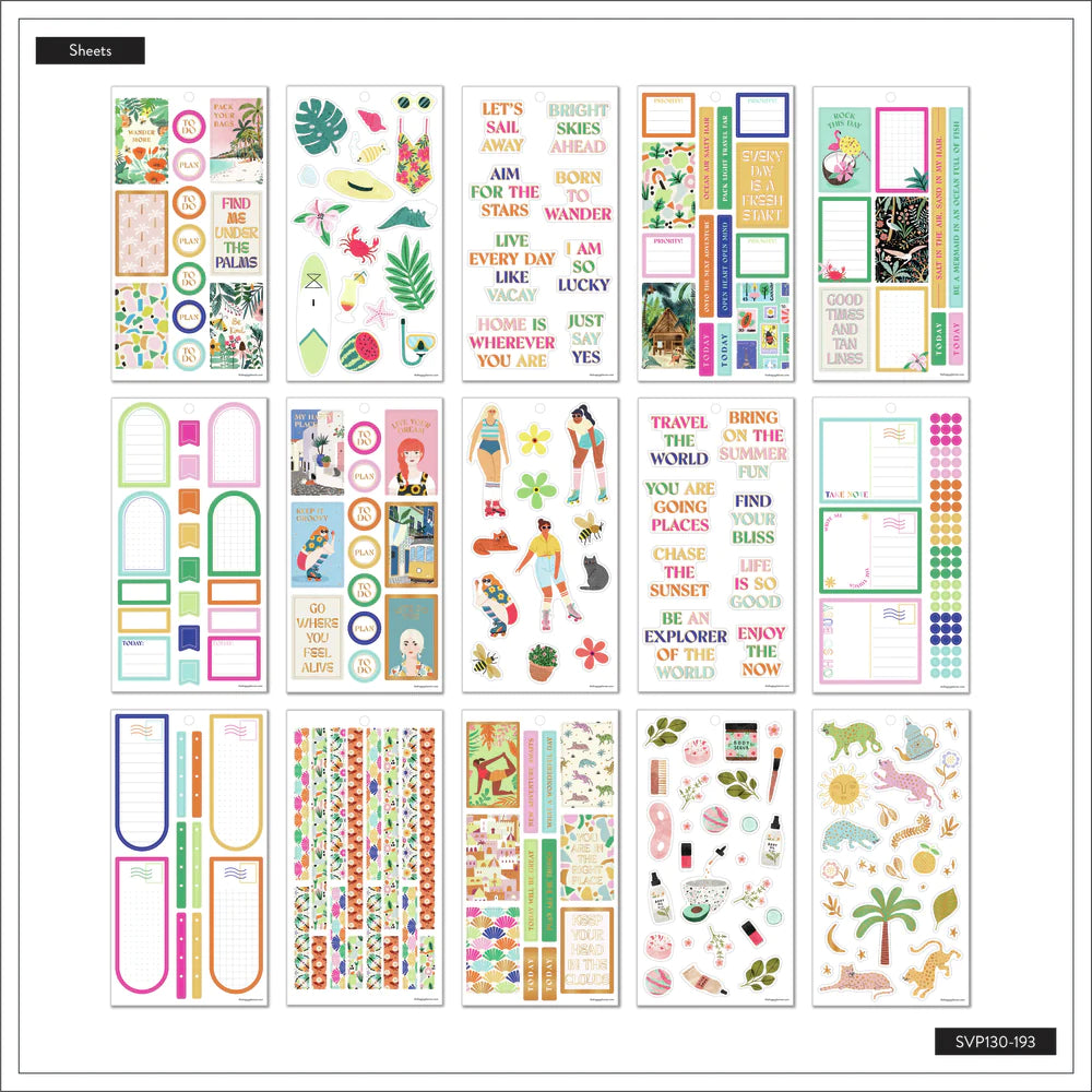 ¡Planifica tu próxima aventura! Este libro de stickers viene con 30 hojas y 680 adhesivos. Estos set presentan ilustraciones inspiradas en viajes. Decora las páginas de tu agenda y utiliza los cuadros coloridos para organizarte.